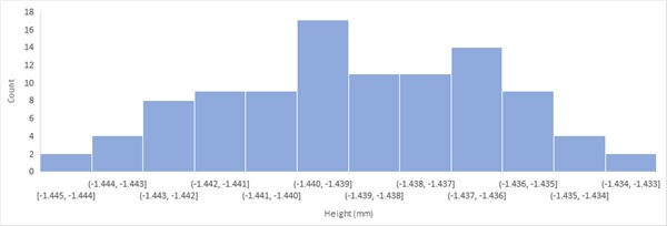 表1 未經濾波處理的PCB SMT焊盤高度測量值分布圖(單像素100次)